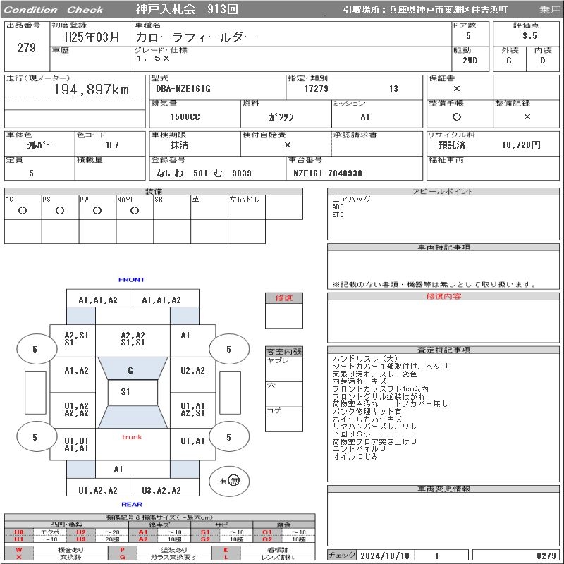 TOYOTA COROLLA FIELDER - лот 279