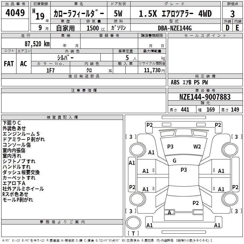 TOYOTA COROLLA FIELDER - лот 4049