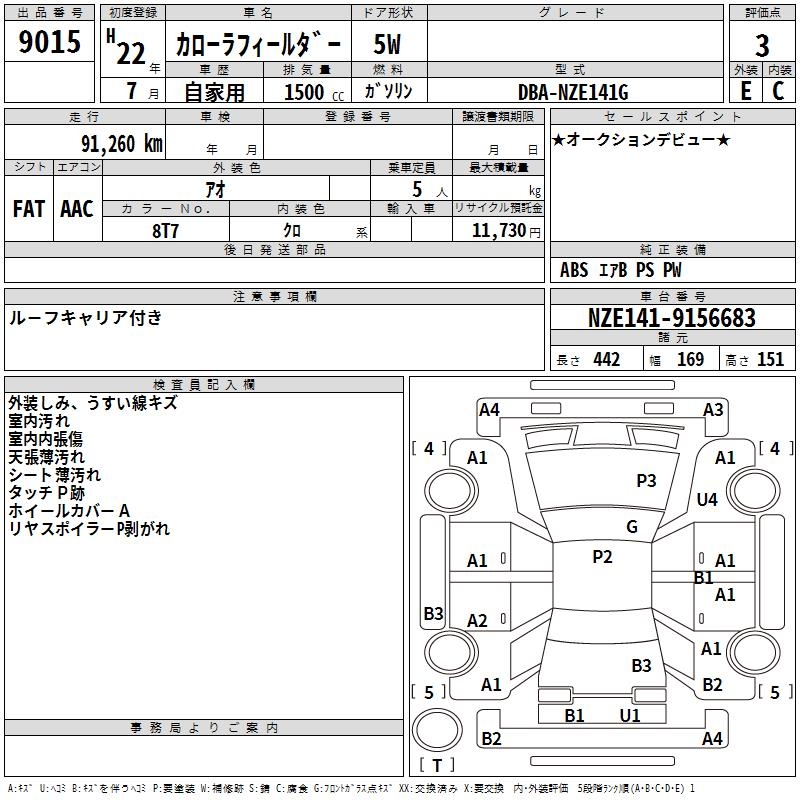 TOYOTA COROLLA FIELDER - лот 9015
