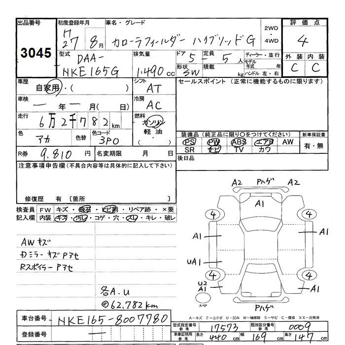 TOYOTA COROLLA FIELDER - лот 3045