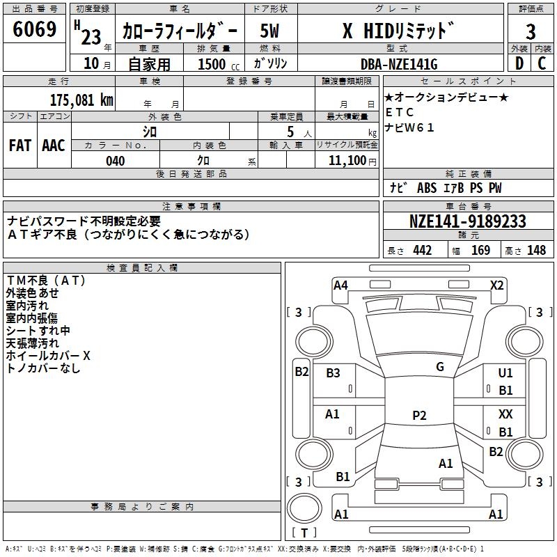 TOYOTA COROLLA FIELDER - лот 6069