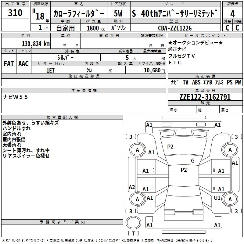 TOYOTA COROLLA FIELDER - лот 310