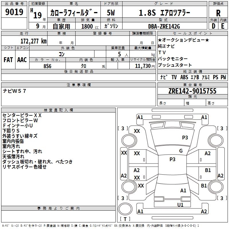 TOYOTA COROLLA FIELDER - лот 9019