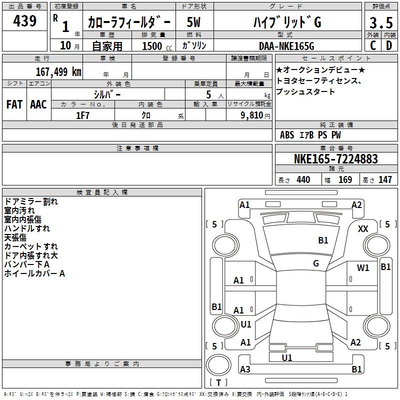 TOYOTA COROLLA FIELDER - лот 439