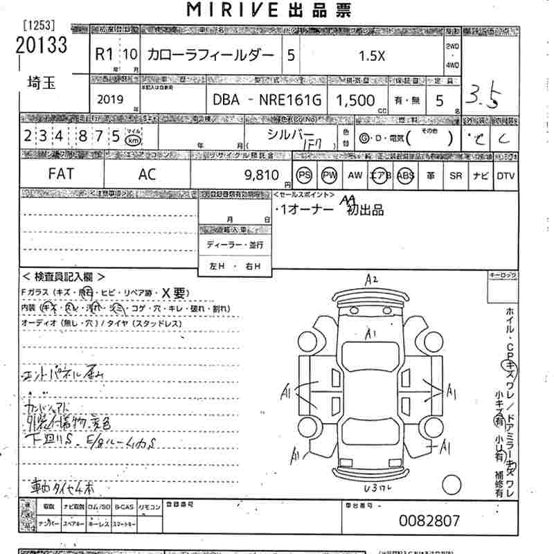 TOYOTA COROLLA FIELDER - лот 20133