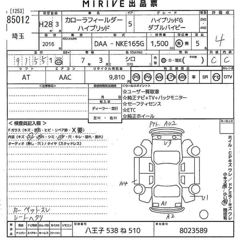 TOYOTA COROLLA FIELDER - лот 85012
