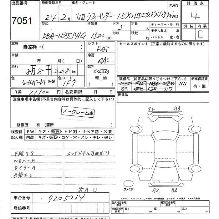 TOYOTA COROLLA FIELDER - лот 7051