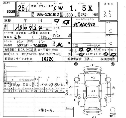 TOYOTA COROLLA FIELDER - лот 6039