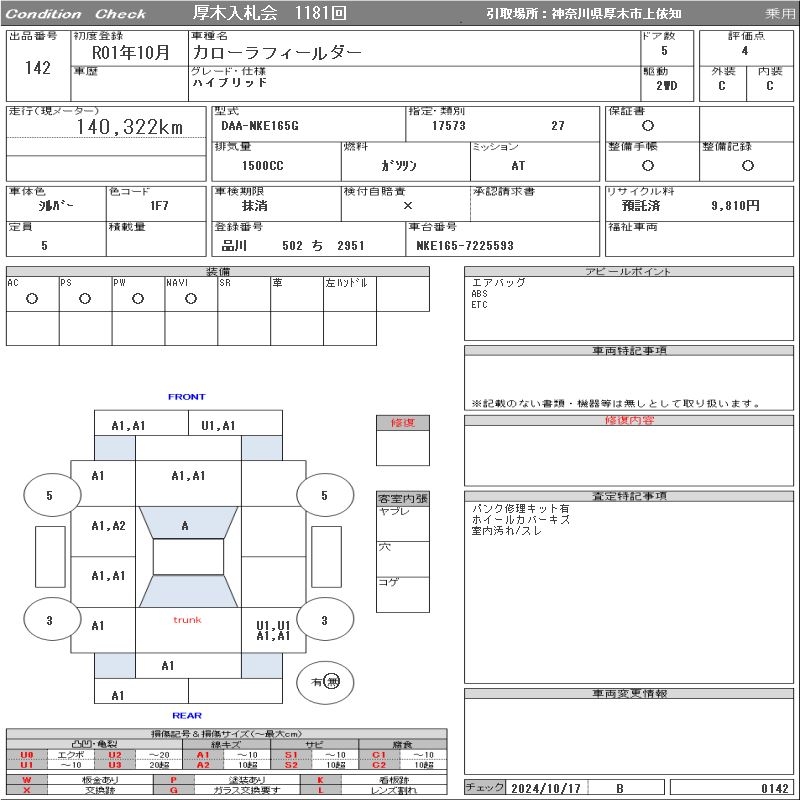 TOYOTA COROLLA FIELDER - лот 142