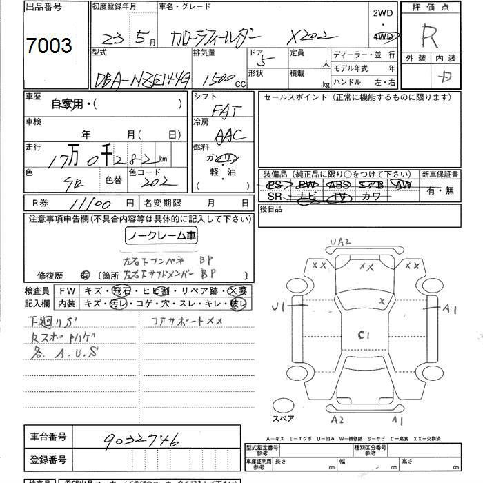 TOYOTA COROLLA FIELDER - лот 7003