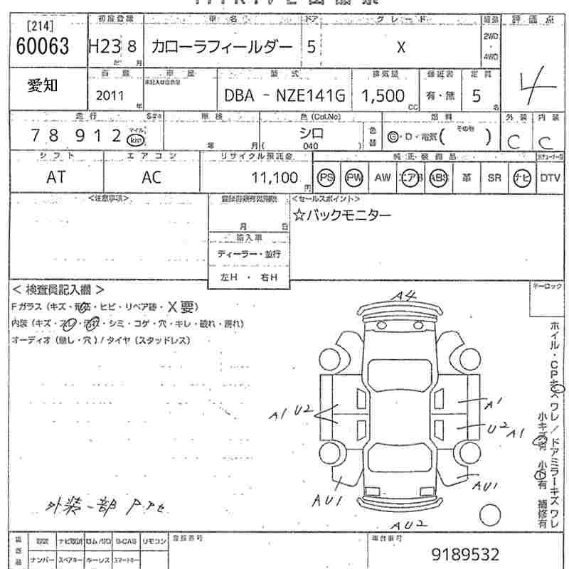 TOYOTA COROLLA FIELDER - лот 60063