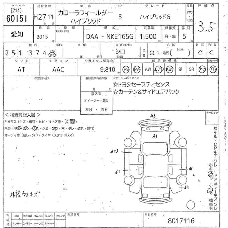 TOYOTA COROLLA FIELDER - лот 60151