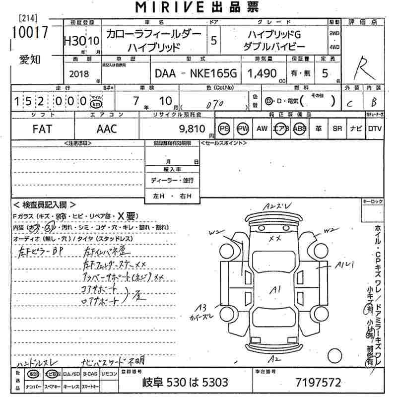 TOYOTA COROLLA FIELDER - лот 10017
