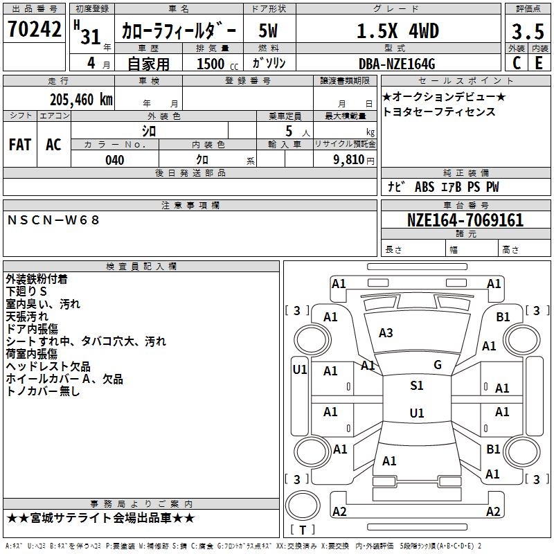 TOYOTA COROLLA FIELDER - лот 70242