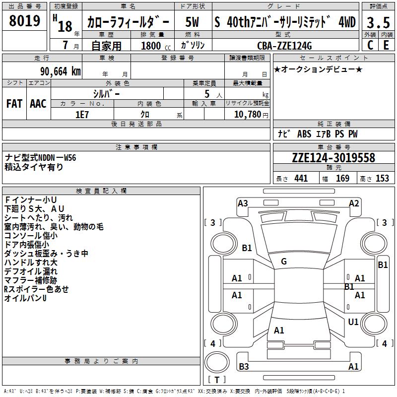TOYOTA COROLLA FIELDER - лот 8019