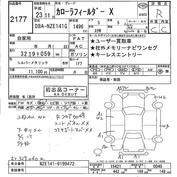 TOYOTA COROLLA FIELDER - лот 2177