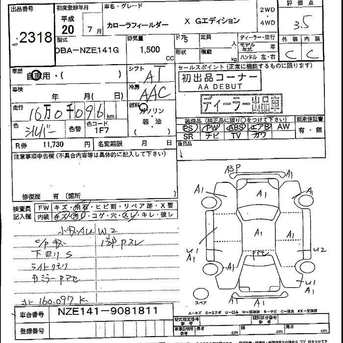 TOYOTA COROLLA FIELDER - лот 2318