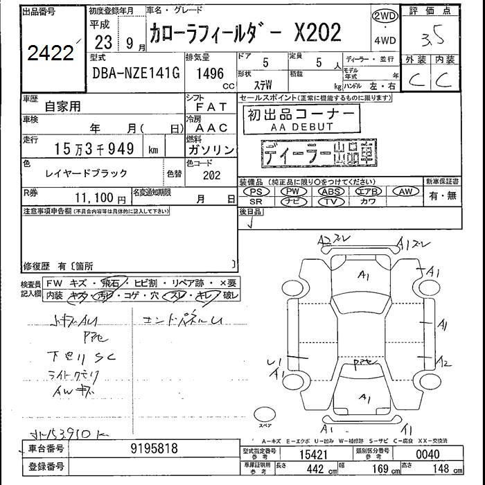 TOYOTA COROLLA FIELDER - лот 2422