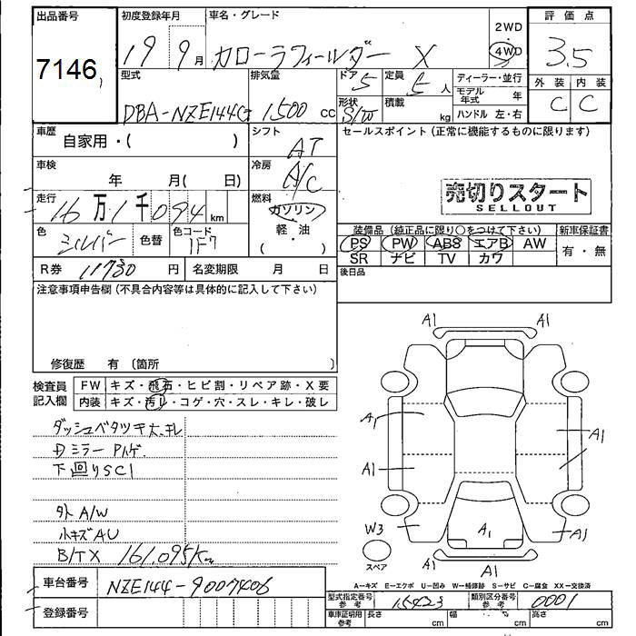 TOYOTA COROLLA FIELDER - лот 7146