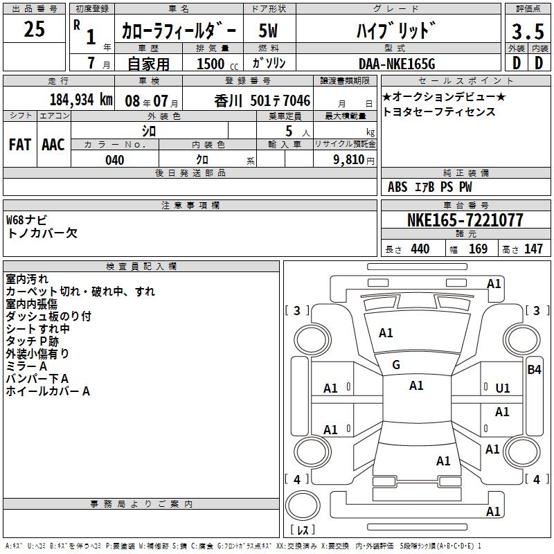 TOYOTA COROLLA FIELDER - лот 25