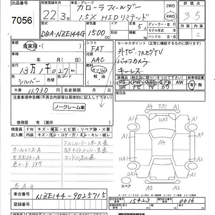 TOYOTA COROLLA FIELDER - лот 7056