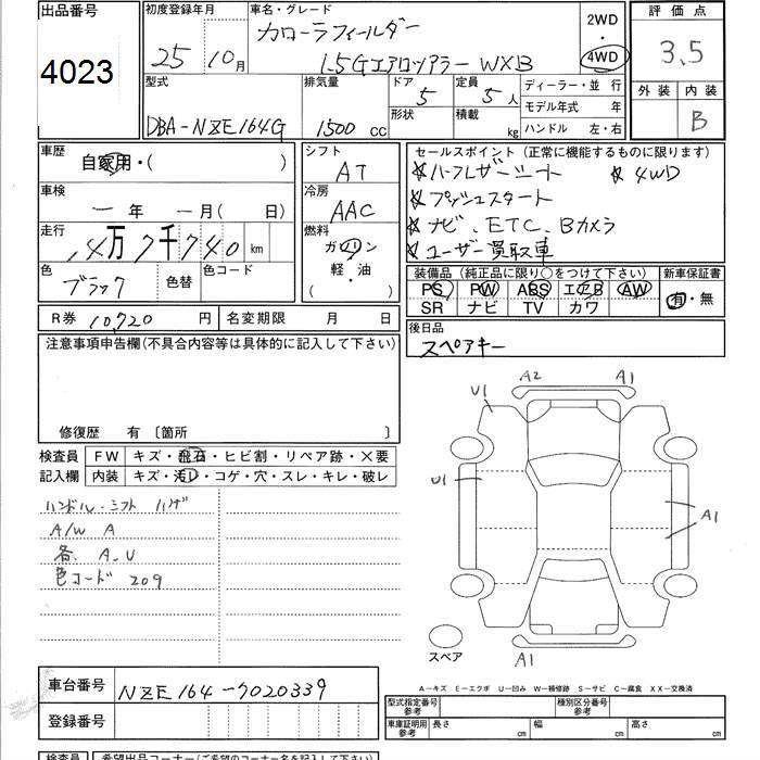 TOYOTA COROLLA FIELDER - лот 4023
