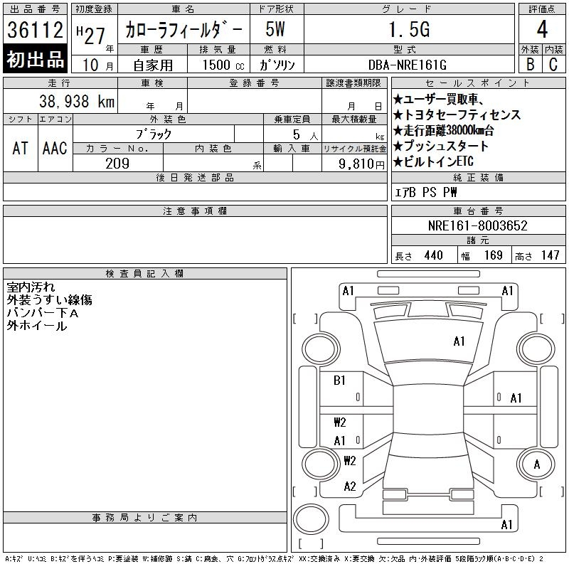 TOYOTA COROLLA FIELDER - лот 36112