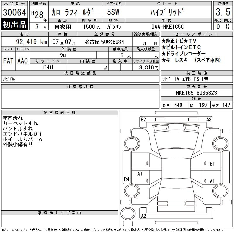 TOYOTA COROLLA FIELDER - лот 30064