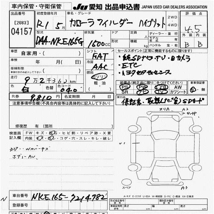 TOYOTA COROLLA FIELDER - лот 4157