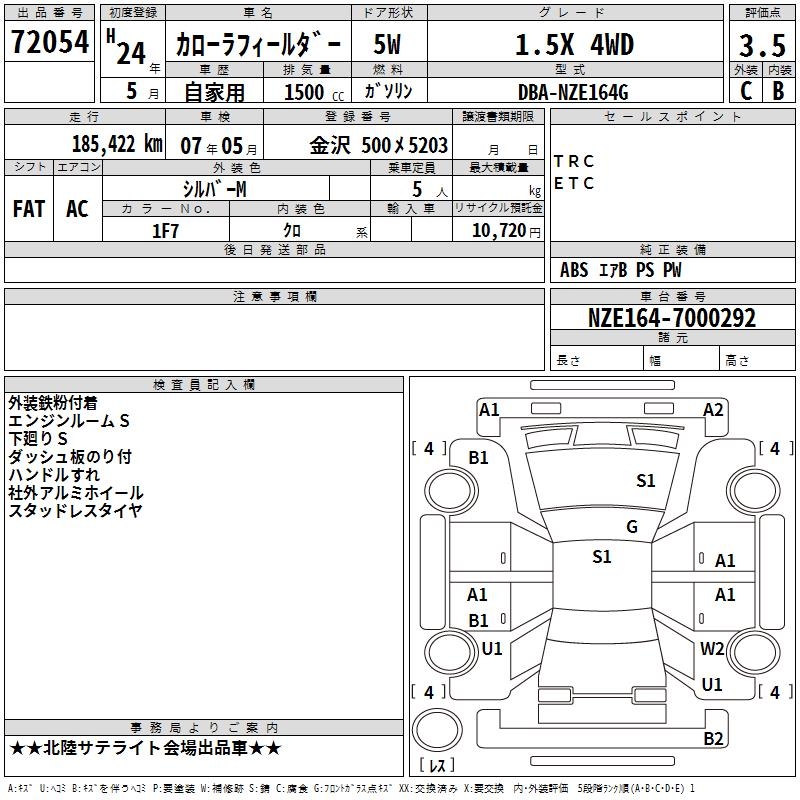 TOYOTA COROLLA FIELDER - лот 72054