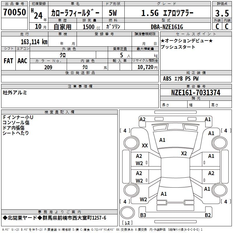 TOYOTA COROLLA FIELDER - лот 70050
