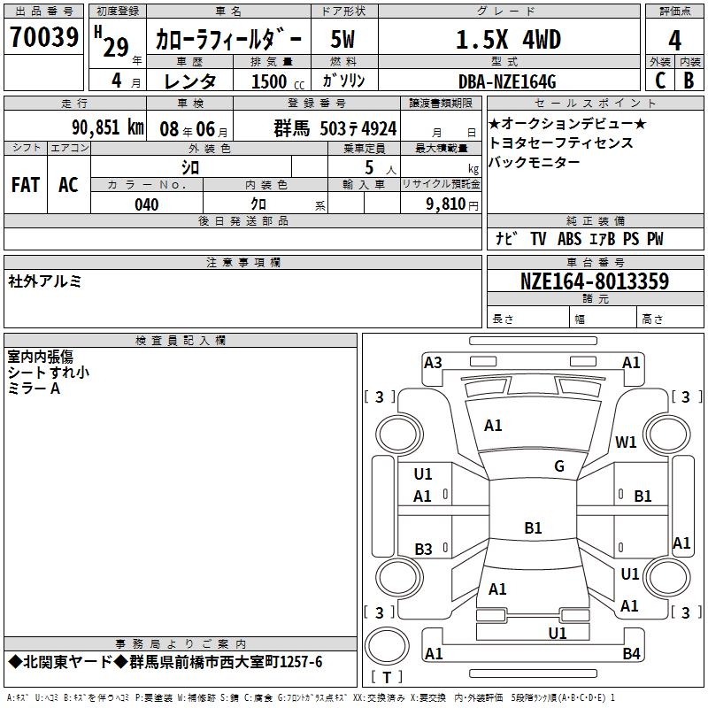 TOYOTA COROLLA FIELDER - лот 70039