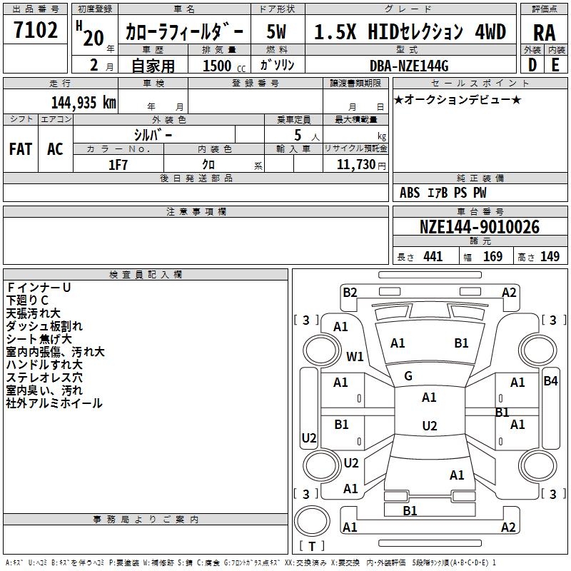 TOYOTA COROLLA FIELDER - лот 7102