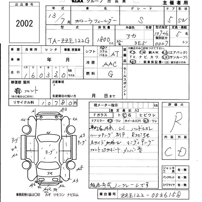 TOYOTA COROLLA FIELDER - лот 2002