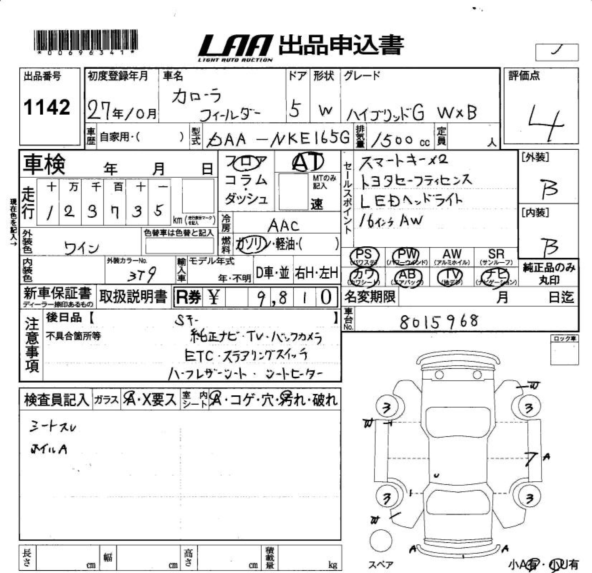 TOYOTA COROLLA FIELDER - лот 1142