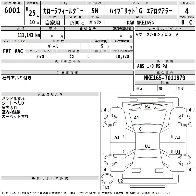 TOYOTA COROLLA FIELDER - лот 6001