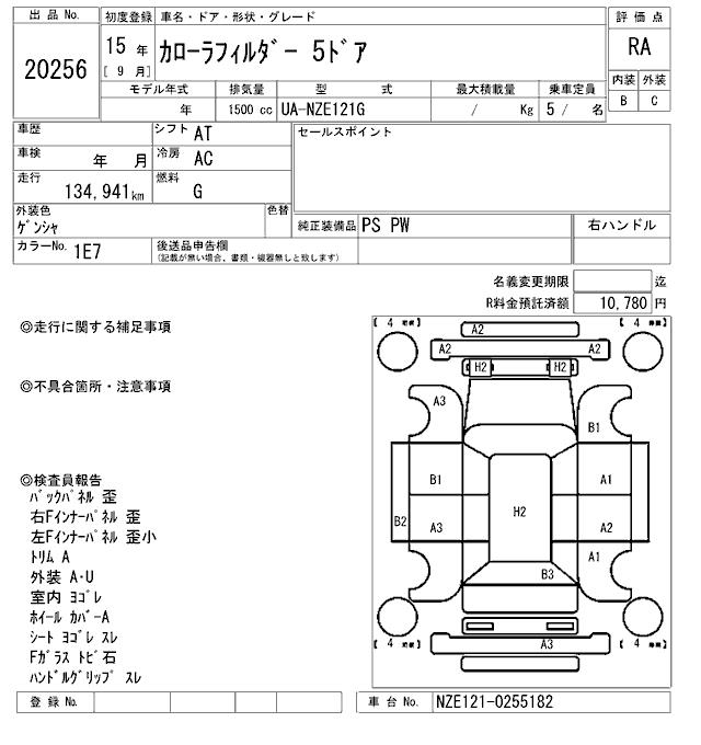TOYOTA COROLLA FIELDER - лот 20256