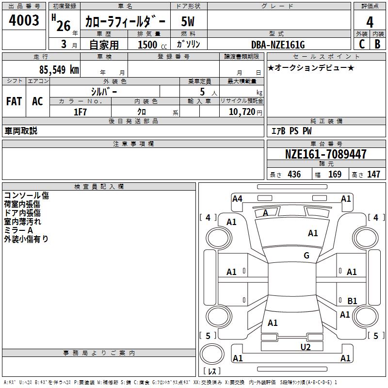 TOYOTA COROLLA FIELDER - лот 4003