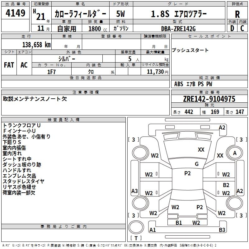 TOYOTA COROLLA FIELDER - лот 4149