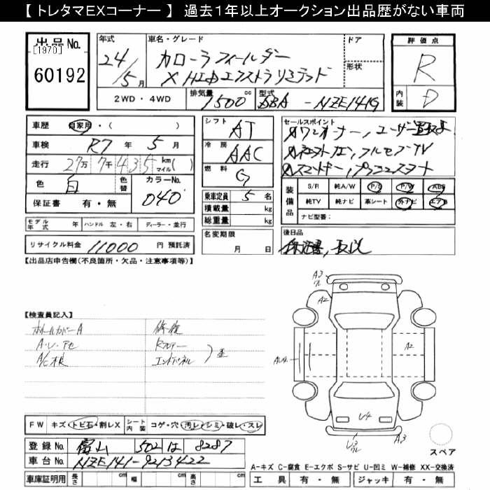 TOYOTA COROLLA FIELDER - лот 60192