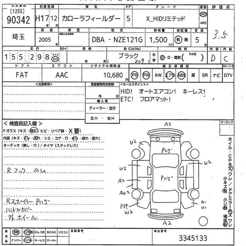 TOYOTA COROLLA FIELDER - лот 90342