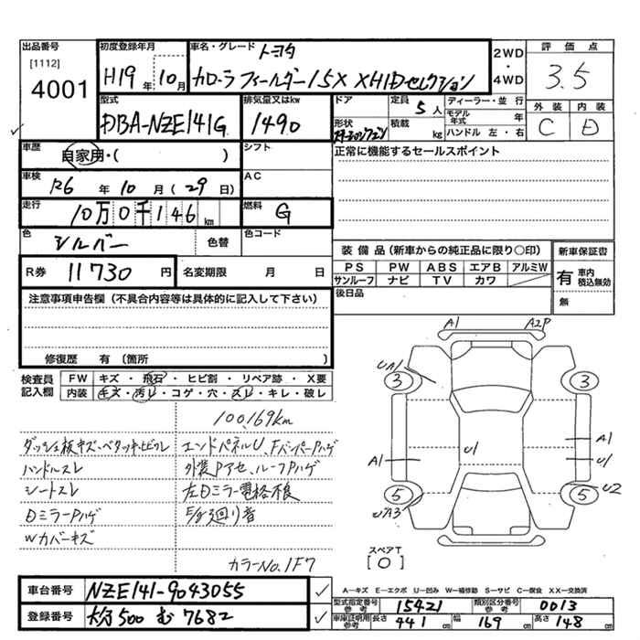 TOYOTA COROLLA FIELDER - лот 4001