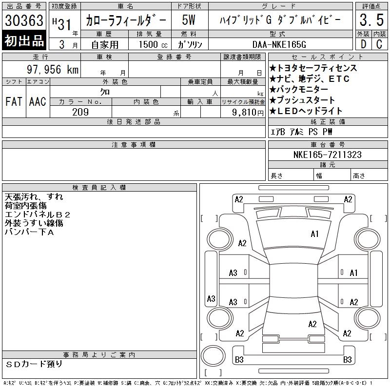 TOYOTA COROLLA FIELDER - лот 30363