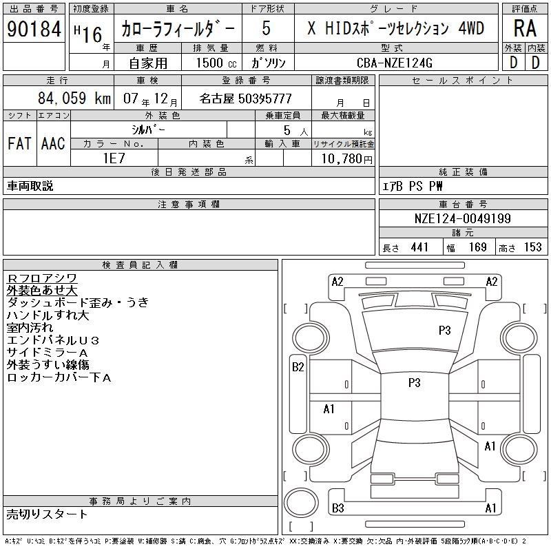 TOYOTA COROLLA FIELDER - лот 90184