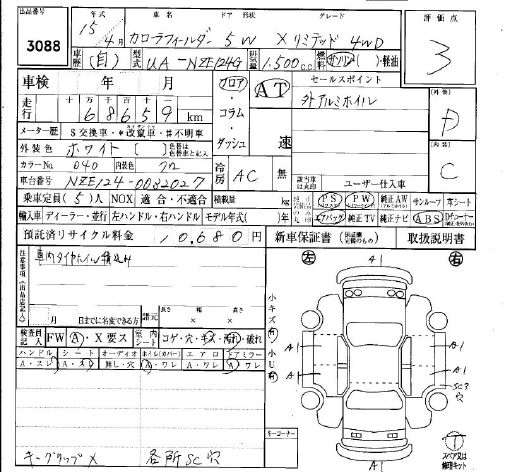 TOYOTA COROLLA FIELDER - лот 3088