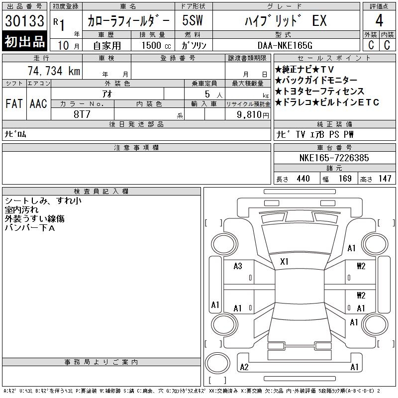 TOYOTA COROLLA FIELDER - лот 30133