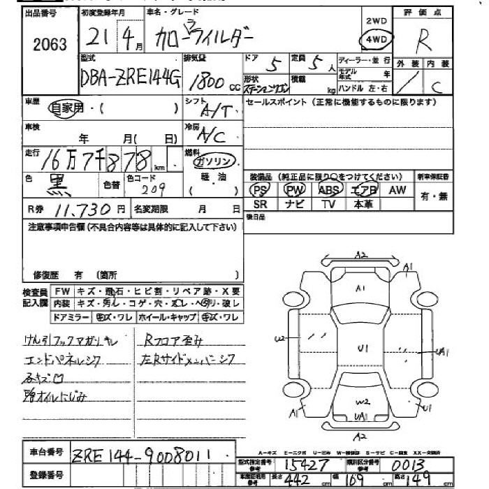 TOYOTA COROLLA FIELDER - лот 2063