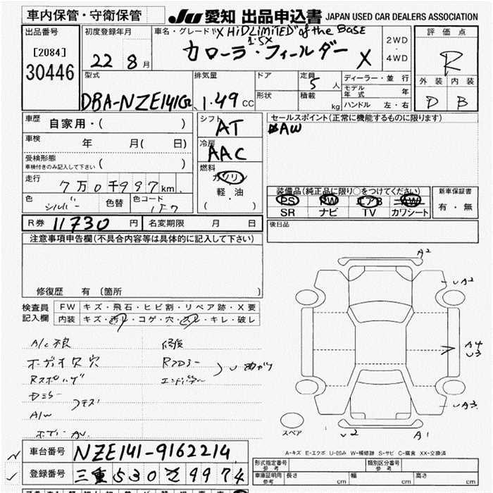TOYOTA COROLLA FIELDER - лот 30446
