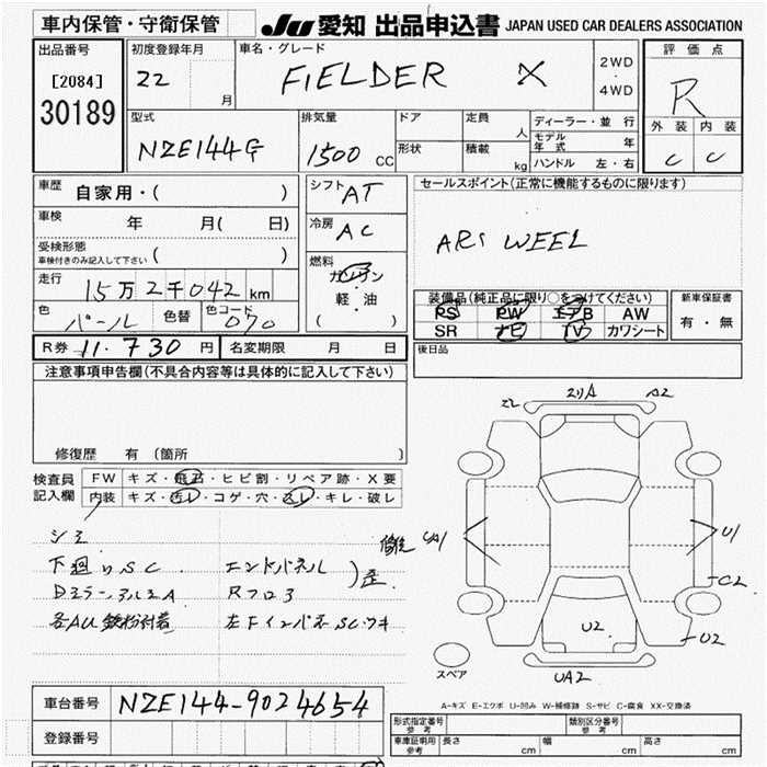 TOYOTA COROLLA FIELDER - лот 30189