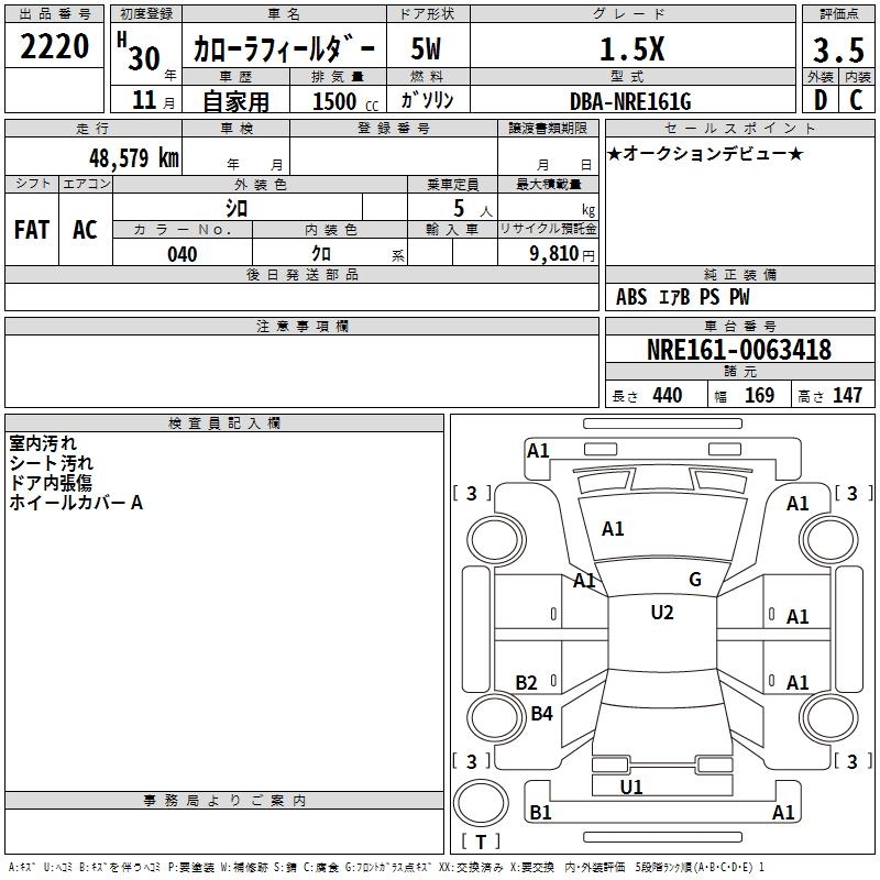 TOYOTA COROLLA FIELDER - лот 2220